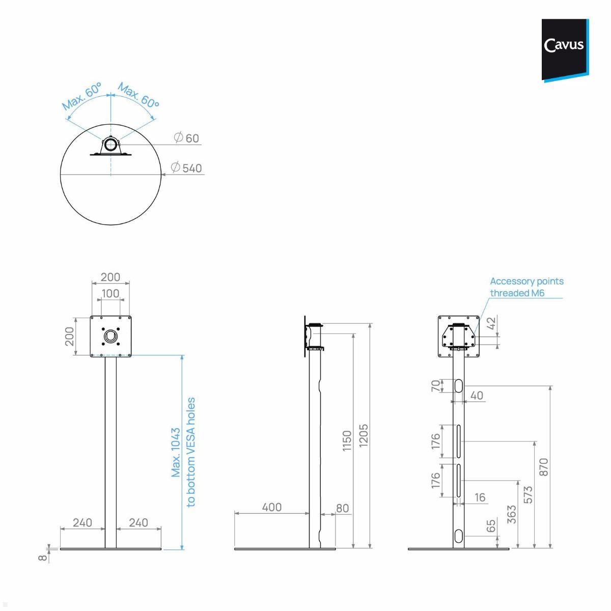Technische Details Cavus SPHERE120S22 TV Standfuß in Edelstahl