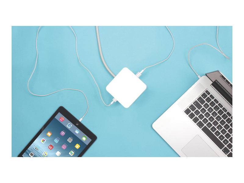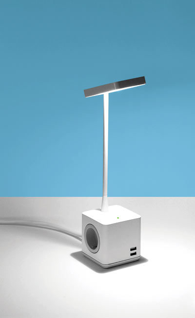Die LED Lampe Cubert von cbs colebrook bosson saunders bietet die Möglichkeit, durch zwei Netzsteckdosen und zwei USB Anschlüsse, Laptops, Tablets, Mobiltelefone und vieles mehr aufzuladen. Falls beide USB-Anschlüsse gleichzeitig benutzt werden, erkennt der integrierte intelligente USB das Hauptgerät, also das zuerst eingesteckte Gerät, welches dann die primäre Energie erhält und sich somit schneller auflädt.