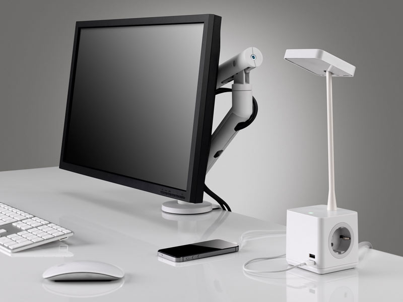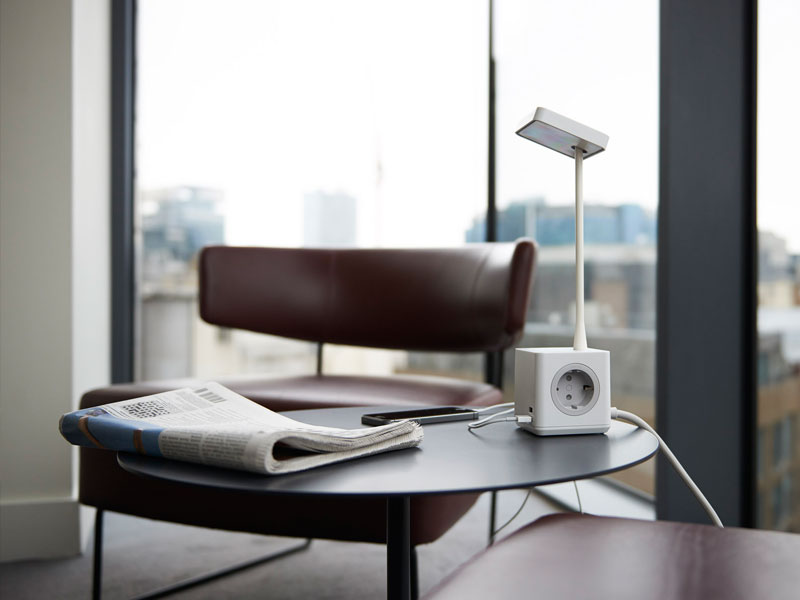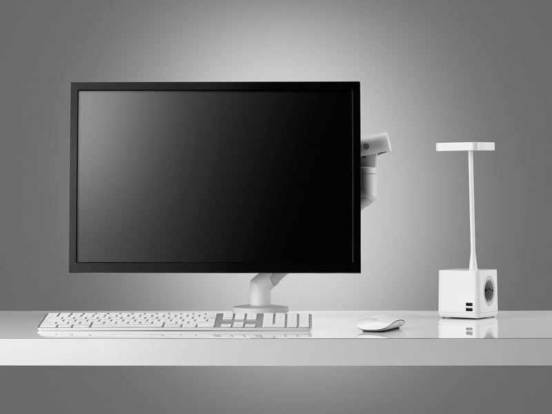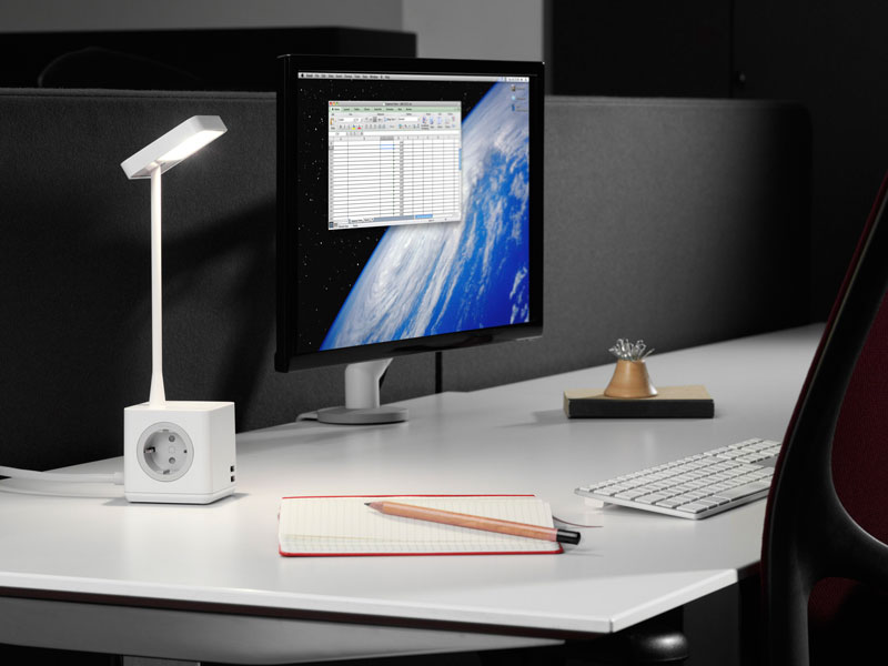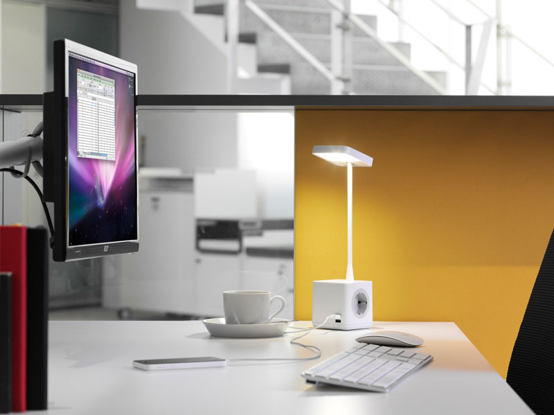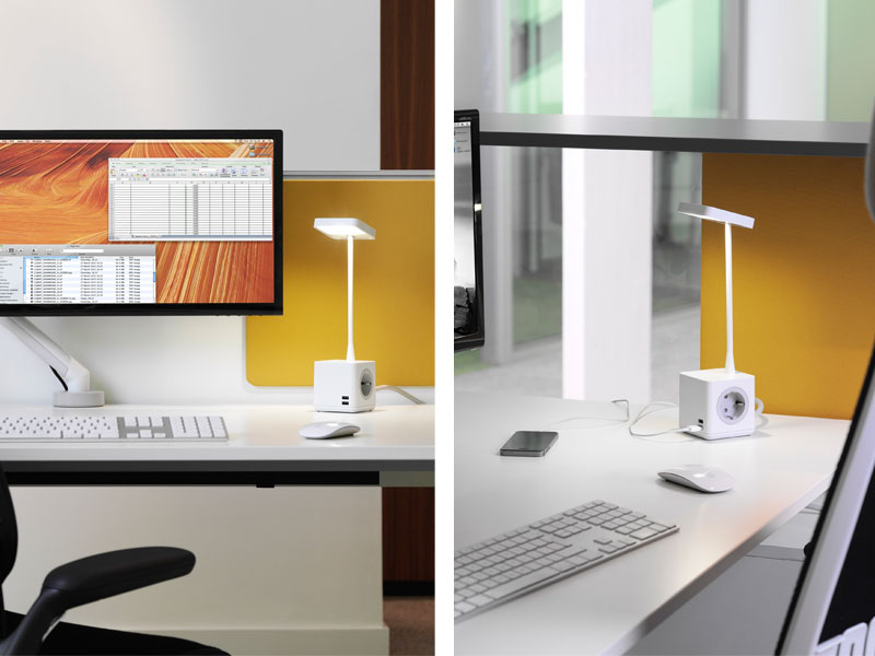 Aufgrund der ultra kompakten Standfläche hat die Lampe Cubert einen minimalen Einfluss auf den Tischfreiraum. Es wird dem User ermöglicht, selbst und einfach die optimale Position für das Licht und die Stromversorgung zu definieren, anstatt abhängig von fixierten Büroeinrichtungen oder Raumbeleuchtungen zu sein.