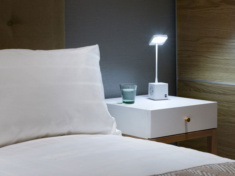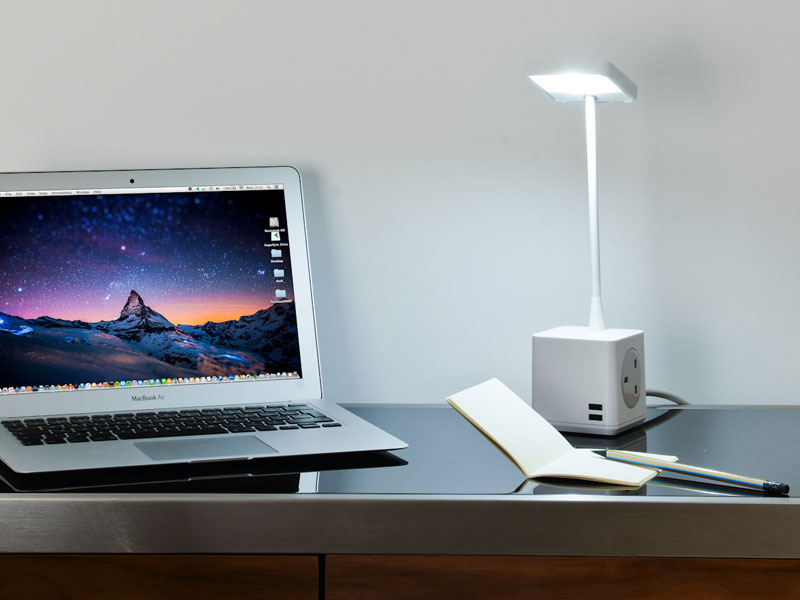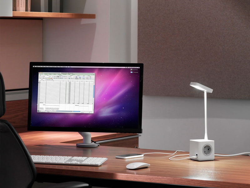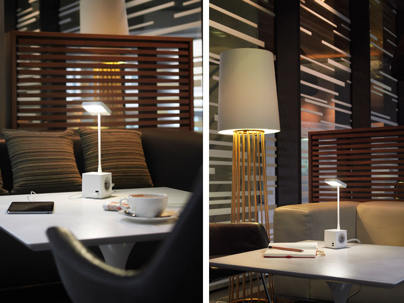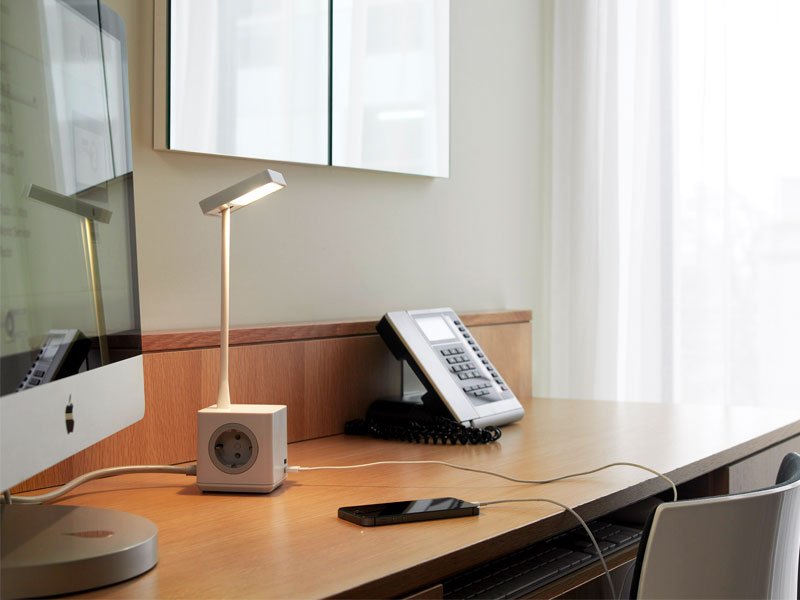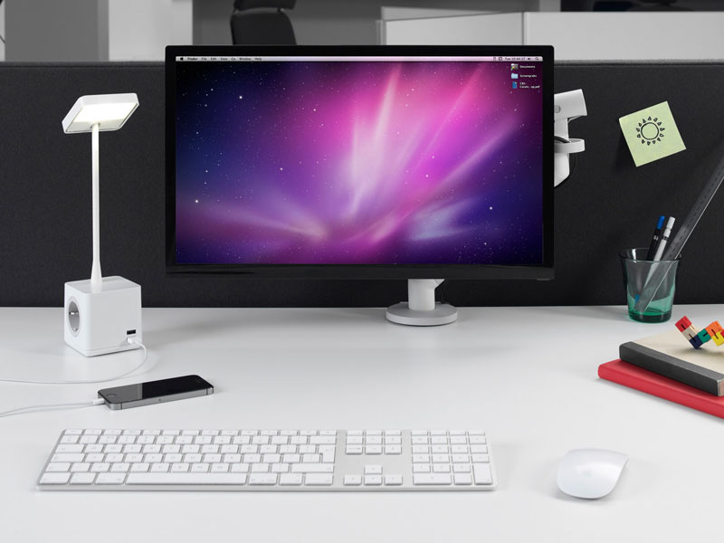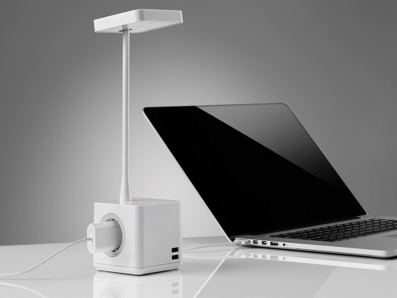 Aufgrund der ultra kompakten Standfläche hat die Lampe Cubert einen minimalen Einfluss auf den Tischfreiraum. Es wird dem User ermöglicht, selbst und einfach die optimale Position für das Licht und die Stromversorgung zu definieren, anstatt abhängig von fixierten Büroeinrichtungen oder Raumbeleuchtungen zu sein.