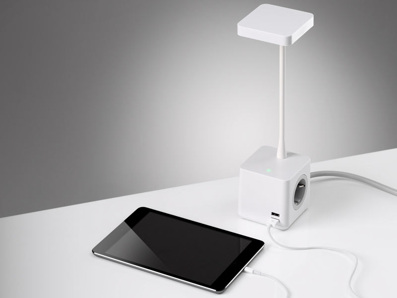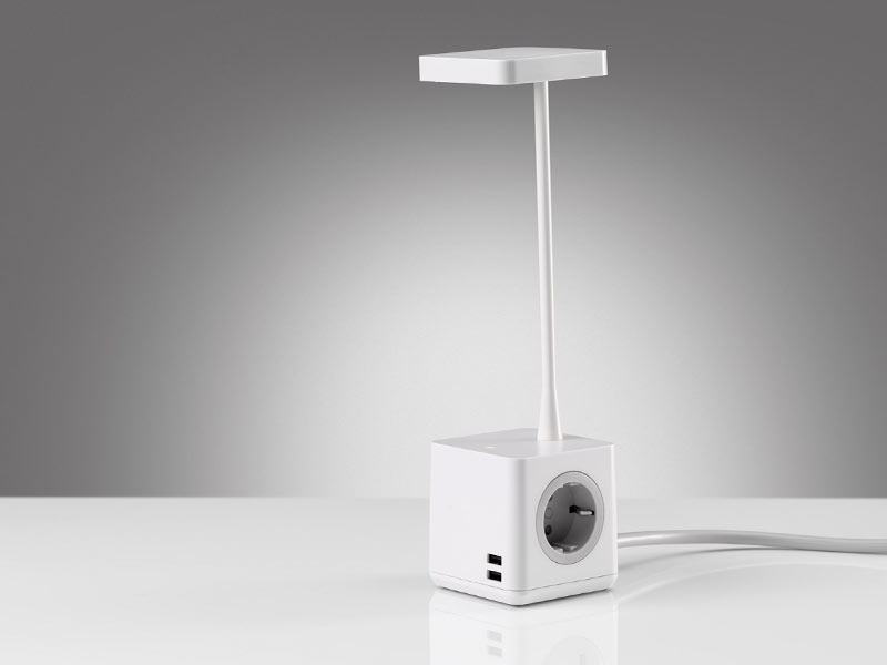 CBS Cubert - weiße Design LED Tischleuchte mit 2 USB-Ports und 2 Stromanschlüssen