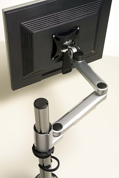 Die als Standard eingesetzte Schnellverstell-Platte passt für alle VESA kompatiblen Monitore und trägt bis zu 8,5 kg Gewicht.