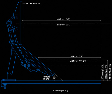 - Monitor: +/- 40° Neigungswinkel