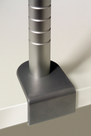 Die Colebrook Bosson Saunders Schreibtischklammer 38 mm (silber) ist speziell entwickelt worden, um Bildschirme mit Säulenhalterungen aufstellen zu können, ohne dabei den Tisch durch ein Montageloch zu beschädigen.