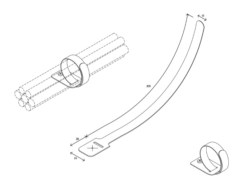 - Kann mit Hilfe der vorgelochten Befestigungsöse überall festgeschraubt werden