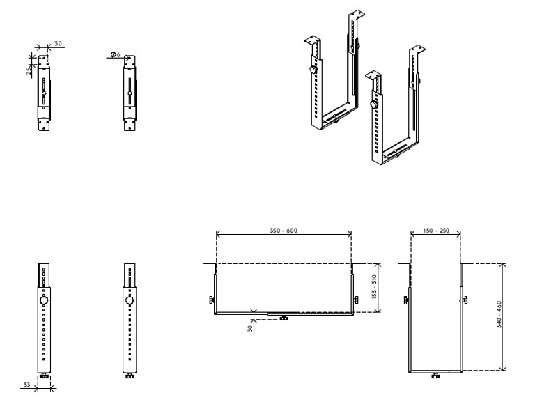 - Breitenverstellbar von 350-600 mm horizontal montiert