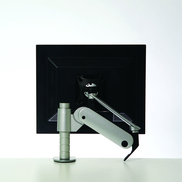 Der CBS Giselle Monitor Arm, silber ist ein eleganter, auf einem Träger montierter Arm, der Widerstandskraft bietet und leicht zu bewegen ist. Die integrierte Gasdruckfeder erlaubt den Anwendern, per Fingerdruck Bildschirme mit einem Gewicht von bis zu 8,5kg in jeder gewünschte Stellung zu positionieren. Dieser Bildschirmarm ist somit erste Wahl am Arbeitsplatz, Beispielsweise bei Hot Desks und Callcenter.