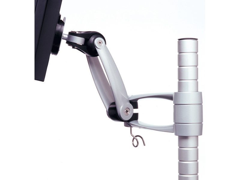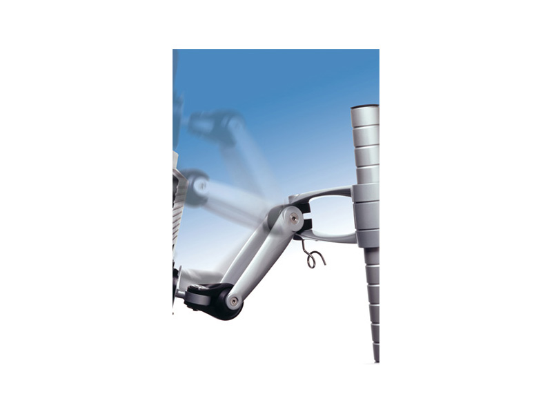 Wishbone Rotation ermöglicht noch etwas mehr Flexibilität als die Standardmodelle des Wishbone. Zusätzlich zu den zahlreichen Justiermöglichtkeiten kommt noch ein weiteres Gelenk am "Ellenbogen" des Monitorarms. Dieses ermöglicht eine erweiterte Höhenjustierung die Ihresgleichen sucht.