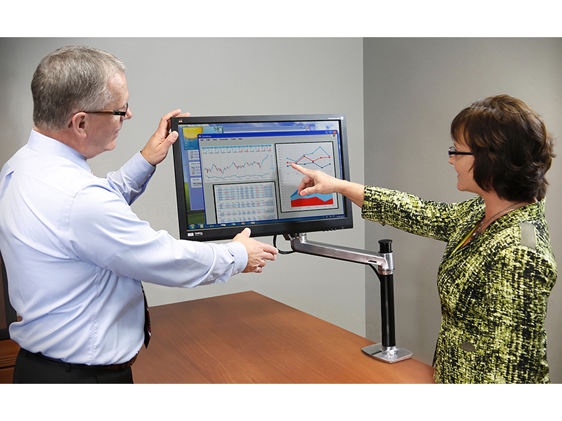 Der Ergotron 45-384-026 bietet einen beispiellosen Bewegungsradius und eignet sich für sitzende wie auch für stehende Benutzer – ermöglicht ein senkrechtes Verstellen um 51 cm (20 in) sowie ein seitliches Verstellen um 157 cm (62 in).