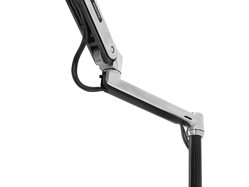 - Kabelmanagement-Clips an der Unterseite des Arms ermöglichen das Führen und Verbergen der Kabel