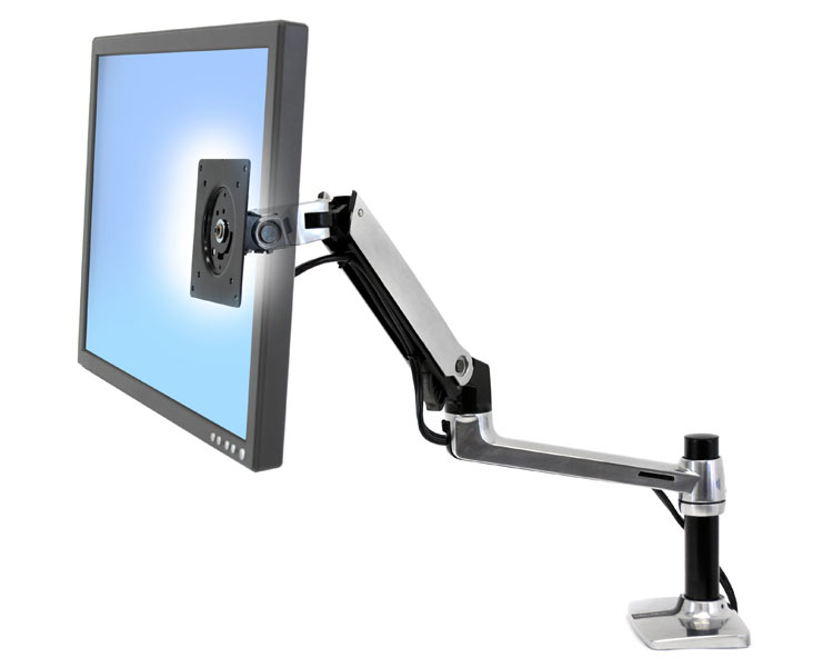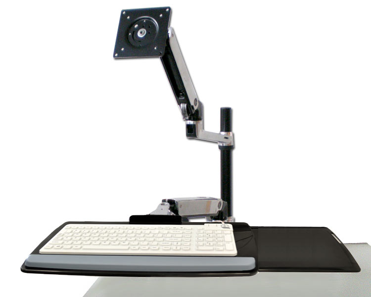Mit dem Ergotron LX Monitorarm und Tastaturhalterung als Tischhalterung lassen sich komplette und Platz sparende Bildschirmarbeitsplätze konfigurieren.