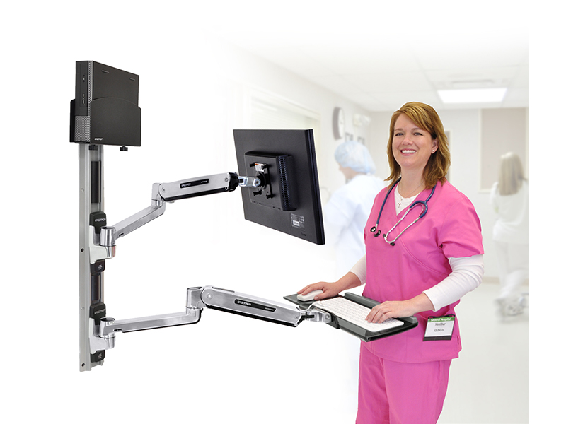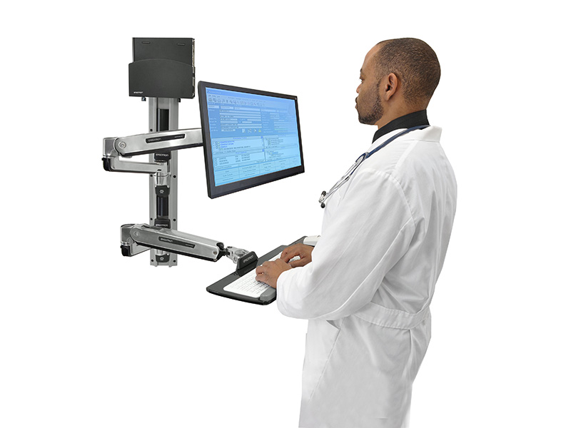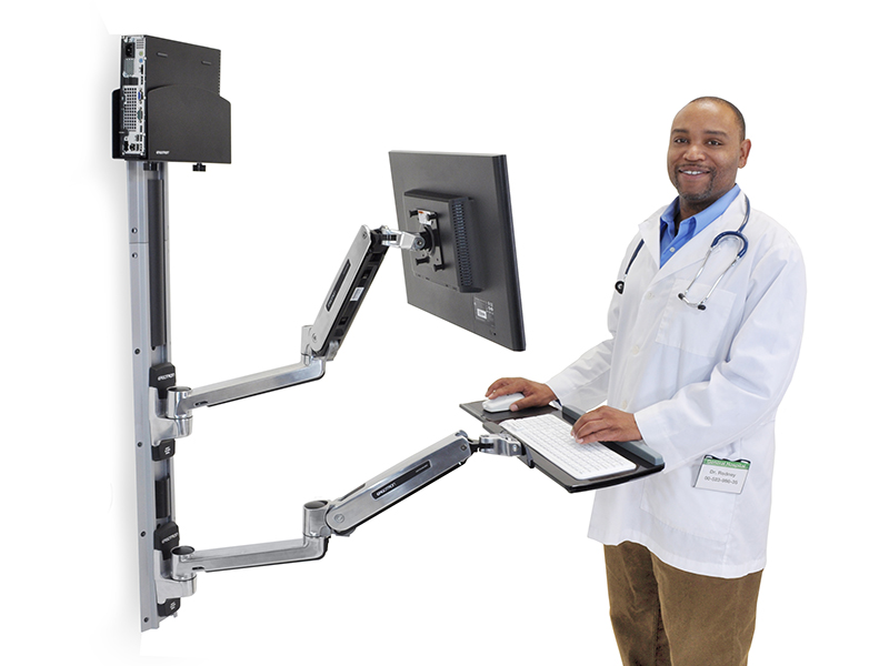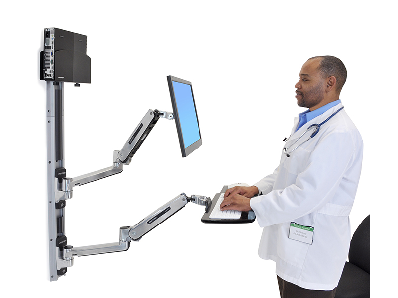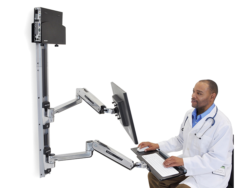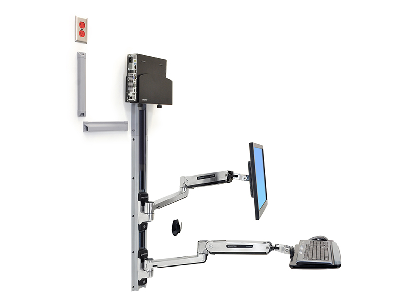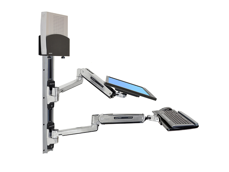 Mit dem Ergotron LX Steh-Sitz Wandmontagesystem, schwarz (45-359-026) können ein PC, ein großer Bildschirm und eine Tastatur samt Maus ganz einfach und schnell direkt an der Wand befestigt werden.