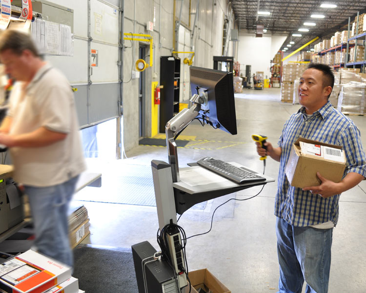 - Includes Monitor arm, integrated worksurface/keyboard tray with left/right mouse tray, scanner holder bracket, mouse holder, cable storage area, four dual casters (two locking), quick-release VESA-CPU Mount, bracket for power strip, cable wrap