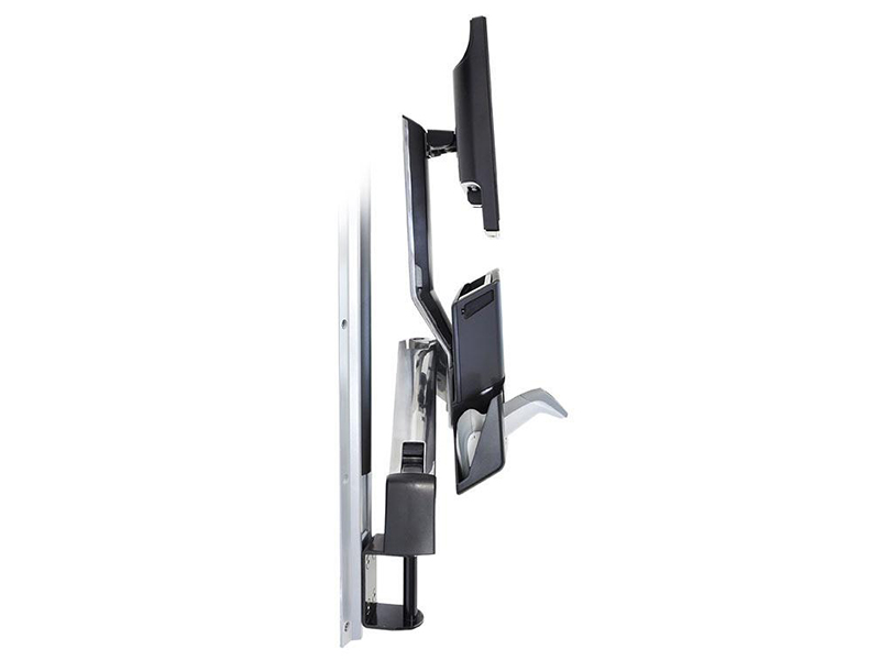 - Includes HD Combo Arm, 34" Wall Track with (2) black track covers, Small Black CPU Holder, CPU spacer, (2) 10Zoll cable channels, CPU and Arm track mount bracket kits, Wall Track fasteners for concrete and wood, CPU direct wall mount kit, height-adjustable Monitor mount, wrist rest, scanner and mouse holders, integrated keyboard tray with left/right mouse tray, handle, VESA monitor mounting kit, cable ties
