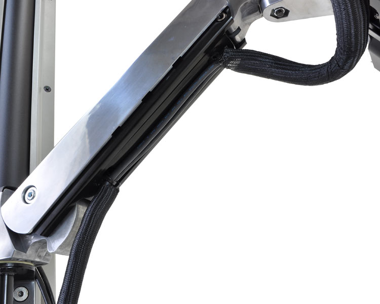 - Saubere, ordentliche und verdeckte Führung der Kabel durch anpassbares Kabelführungssystem