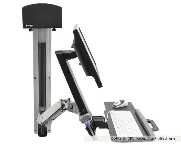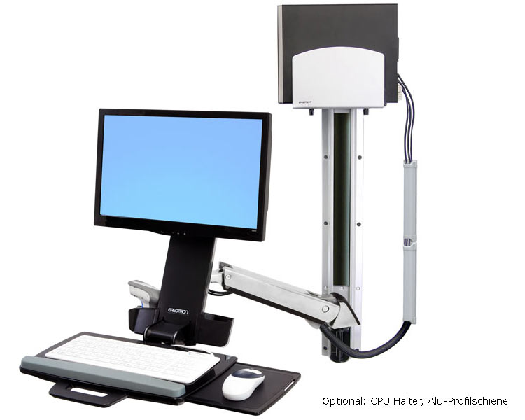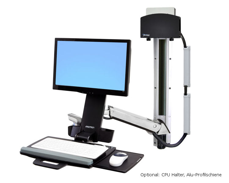- Ergonomische, neigbare Tastaturhalterung mit Mausablage links oder rechts ermöglicht neutrale Haltung bei der Dateneingabe