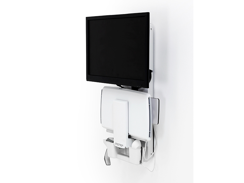 Ergotron StyleView Sitz-Steh Vertical Lift Behandlungszimmer weiß (61-080-062) mit sehr niedrigem Profil und Höhenverstellung 510mm, die von einer Sitz- auf eine Stehposition und umgekehrt eingestellt werden kann: Mit einer Aufbewahrungstiefe von nur 152mm ist dies die perfekte Lösung für kleine Patientenzimmer.