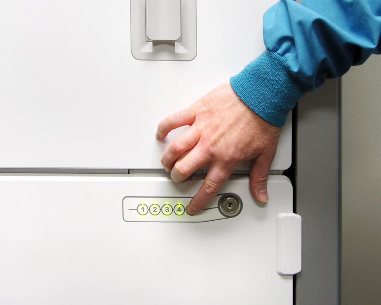 - Schlüsselfreier Sperrmechanismus schützt Patientendaten und gewährleistet die Einhaltung von Datenschutzrichtlinien wie HIPAA (Health Insurance Portability and Accountability Act)