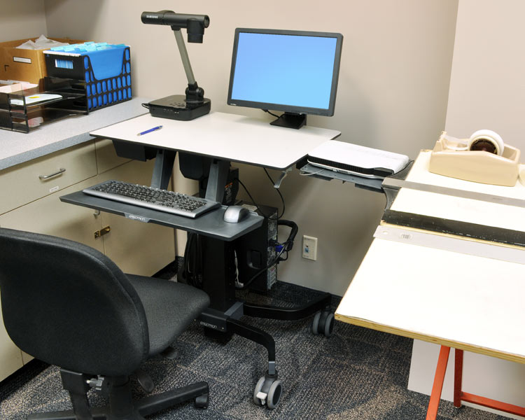 - Large worksurface = 31"W x 21 ZollD (78.7 x 53.3 cm). Allows space for document camera with viewing area, as well as for books, notes or a writing surface. Constructed of durable phenolic material. Includes mounting holes to securely fasten document camera. Contact Ergotron for detailed information about compatible document camera models