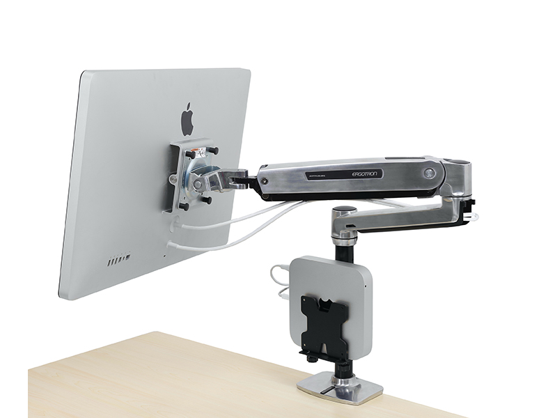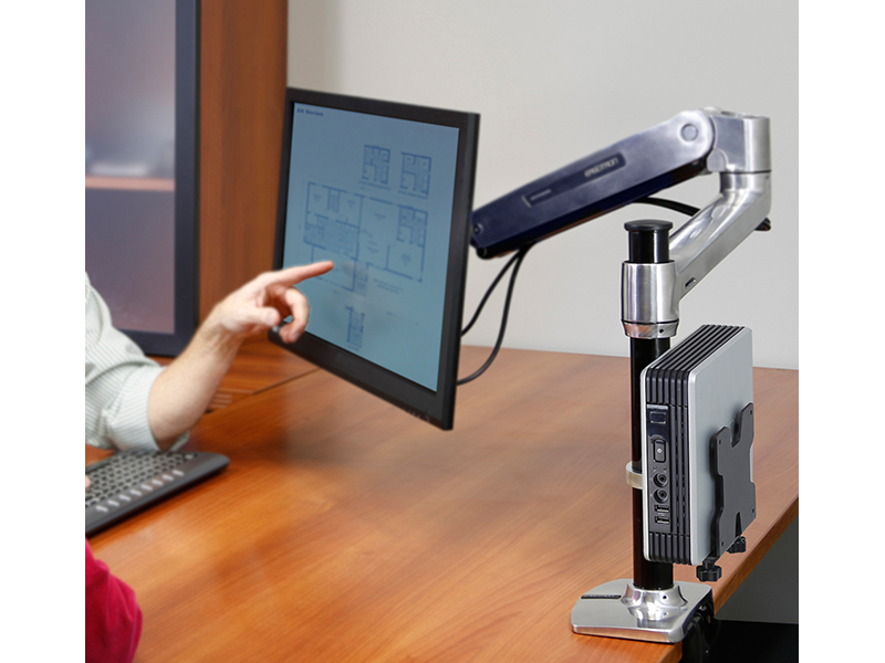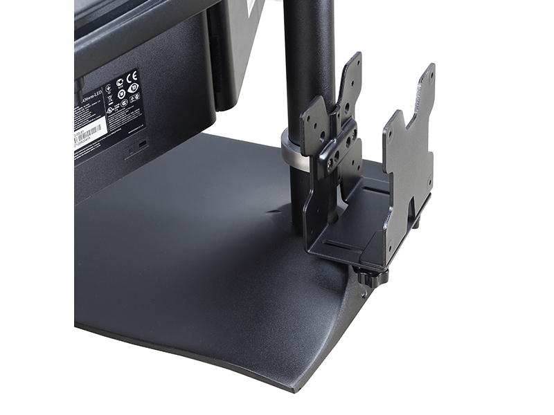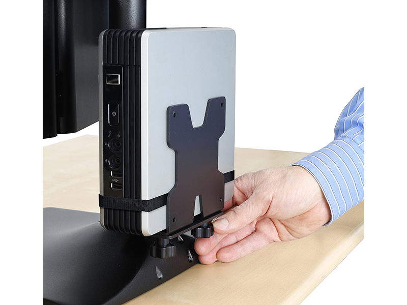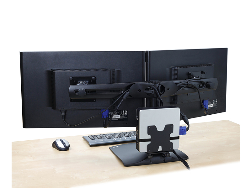 - Integriert effizient einen kleinen Computer in einer Monitorhalterung, wodurch eine Workstation Komplettlösung geschaffen werden kann