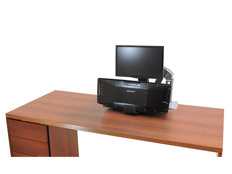 Die Ergotron WorkFit-A Steh-Sitz Arbeitsplatz mit Arbeitsfläche (24-317-026) ist ideal für Eckarbeitsplätze geeignet und wird an der Rückseite oder Seite der meisten Arbeitsflächen montiert, um einen mühelosen Arbeitsstil im Sitzen und Stehen zu ermöglichten. Wenn Sie Ihre Schreibtischfläche benötigen, klappen Sie die Tastatur nach oben und schwenken Arm und Display aus dem Weg.