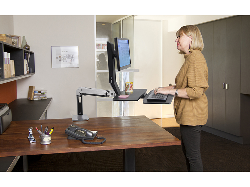 - Bieten Sie Mitarbeitern die Möglichkeit, im Stehen zu arbeiten, ohne teure, höhenverstellbare Stühle anschaffen zu müssen.