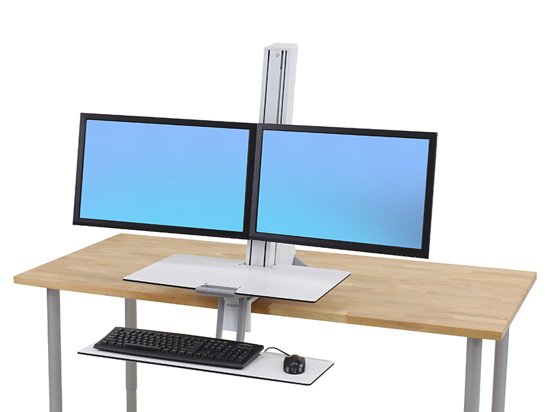 Aus der sitzenden in die stehende Haltung wechseln, wann immer Sie möchten. Mit der Ergotron WorkFit-S Dual mit Worksurface, weiß (33-349-211) lassen sich Tastatur und Display gleichzeitig in der Höhe verstellen, wodurch komfortables Arbeiten am Computer auch über längere Zeiträume hinweg ermöglicht wird.