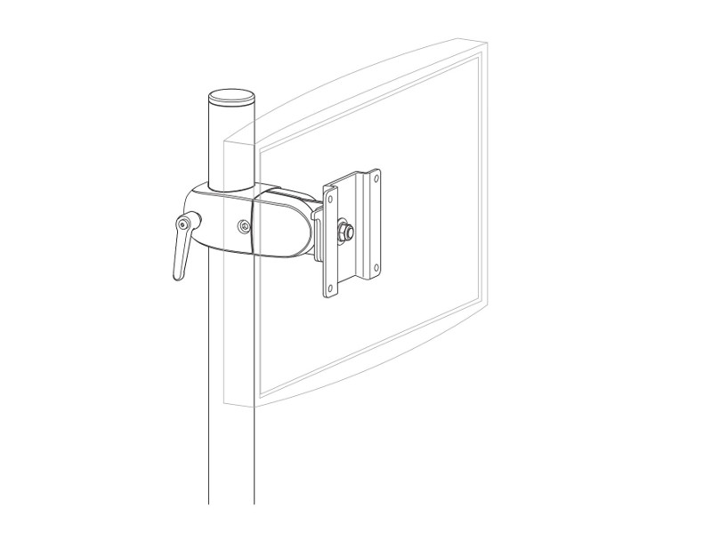 Das Ergotron DS100 Einzelklemmgelenk kann an jedem Punkt entlang einer DS100-Stange befestigt werden und ermöglicht ein Rundum-Neigen und Drehen eines Displays. Die Höhe des Displays an der Stange kann durch einfaches Drehen eines Griffes verstellt werden. Das stark belastbares Reibungsgelenk hält selbst ein größeres Display fest, ohne dass die Neigungsfunktion beeinträchtigt wird.