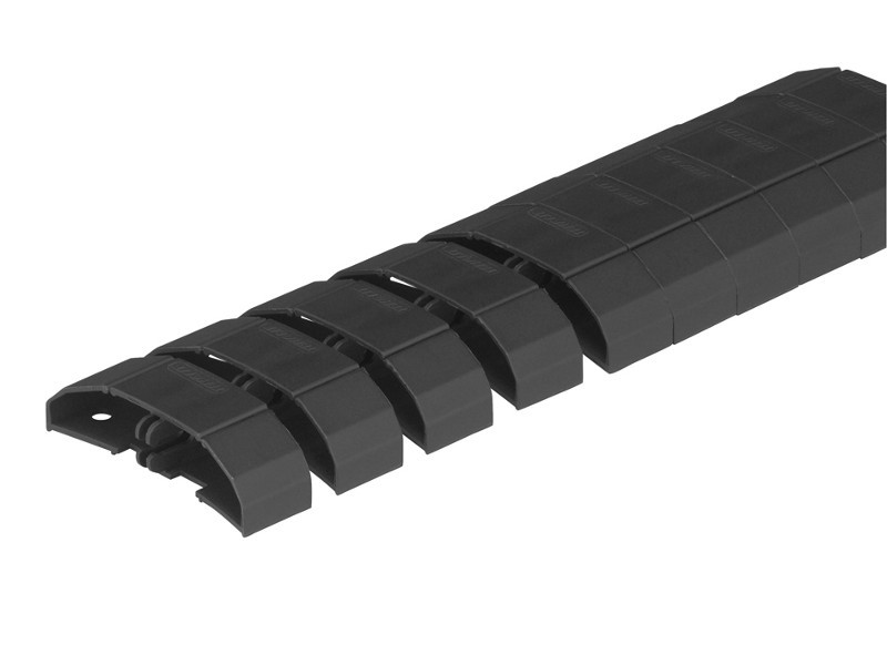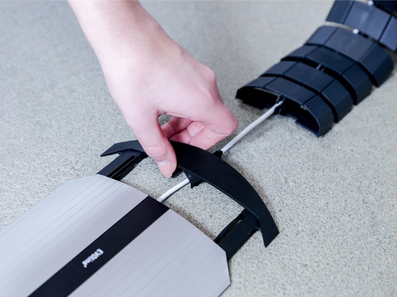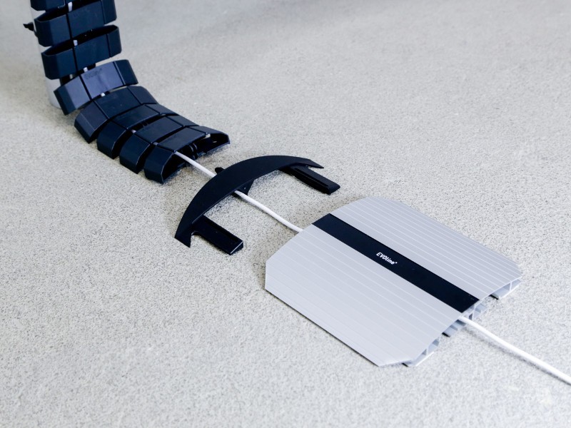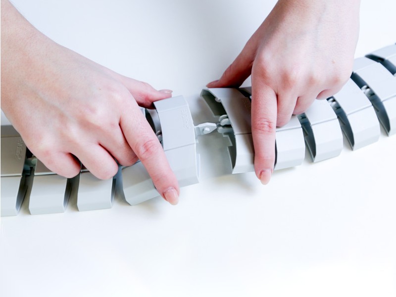 Die einzelnen EVOline WireLane Abschnitte sind biegsam und lassen sich einfach miteinander verketten und voneinander lösen. Kabel lassen sich auch nach der Montage ganz einfach in die WireLane einfügen.