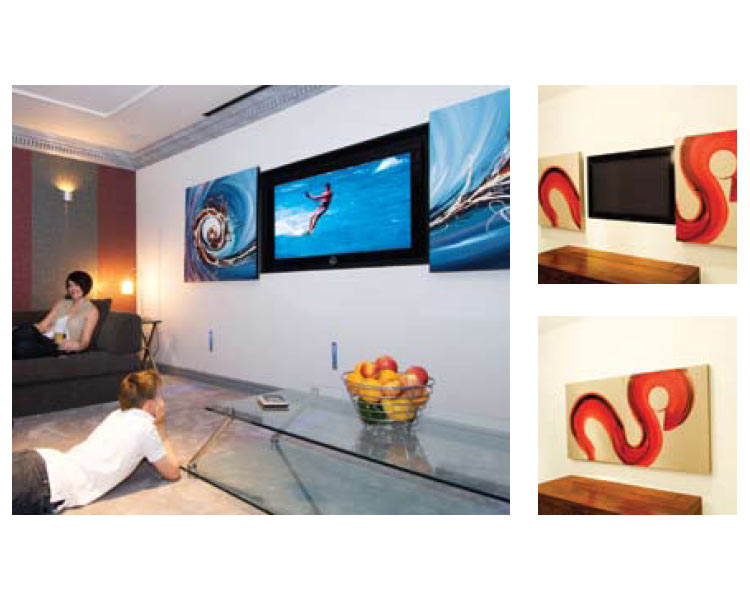 Das futureautomation geteilter Bilderlift 42 versteckt Heimkinodisplays elegant hinter zwei Bildern, die horizontal zur Seite bewegt werden. Ein brillanter, einfacher Mechanismus, der aber trotzdem seine Wirkung nicht verfehlt und die bündige Installation von Heimkinodisplays in einer Wand optimal ergänzt! Eine Vielzahl an gestalterischen Innenraumkonzepten kann auf diese Weise realisiert werden, die maximalen Wohnkomfort und perfektes Home Entertainment miteinander verbinden.