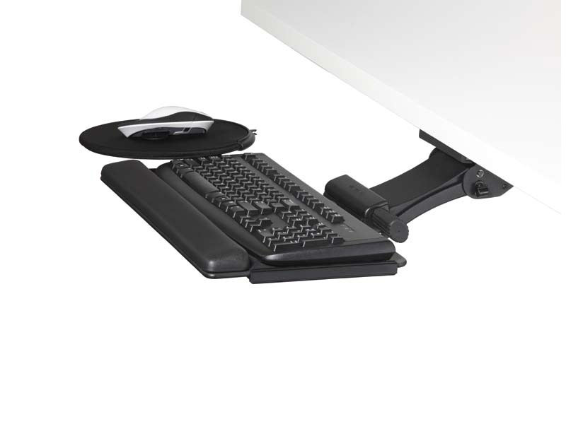 - Erhöhter Schwenkmechanismus schützt die Tastatur vor Zusammenstößen mit der Schreibtischkante