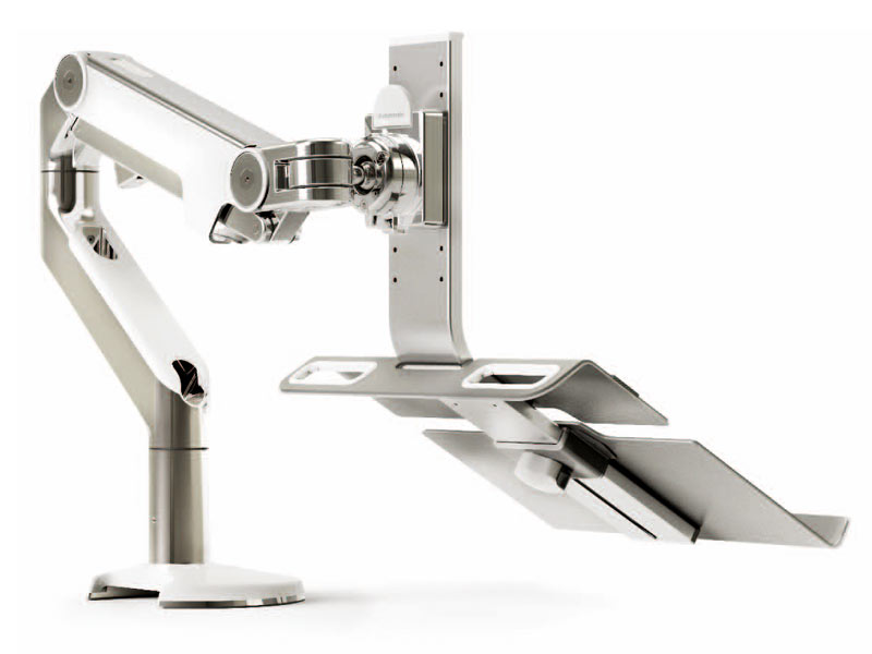 Die Verwendung von Notebooks am Arbeitsplatz breitet sich immer weiter aus. Bedauerlicherweise wirken sie kontraproduktiv für ein ergonomisches Arbeitsumfeld und führen oft zu dem sogenannten „Laptopbuckel “. Der führende ergonomische Hersteller Humanscale hat daher eine ergonomische Laptop Halterung für den Tisch entwickelt, mit dem man in einer gesunden Haltung an seinem Laptop arbeiten kann, während man zusätzlich Tischfläche frei macht.