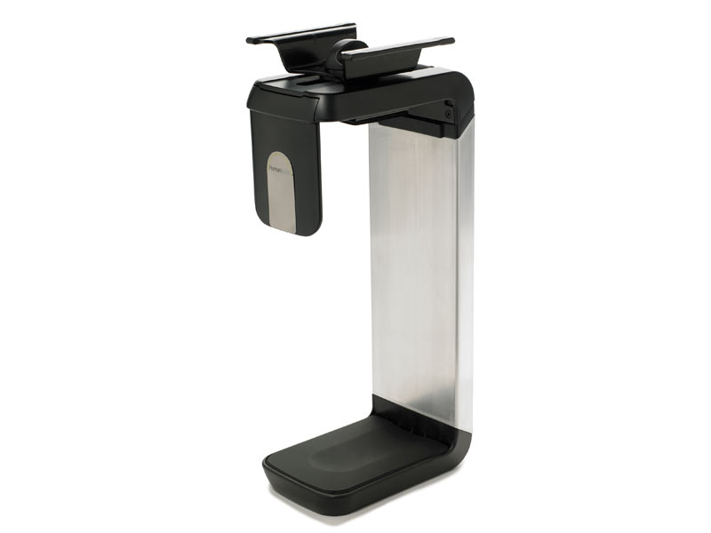 Ob auf Rädern oder auf Gleitschienen, die CPU-Halterungen von Humanscale erleichtern den Zugriff auf Kabel, Anschlüsse und Laufwerke. Wertvoller Platz wird gespart, indem die CPU vom Desktop entfernt und sicher und fern vom Boden unter der Arbeitsfläche positioniert wird. Die PC-Halterung CPU600 ermöglicht einen effizienteren ergonomischen Arbeitsplatz. Sie bietet die schnellste und einfachste Installation. Die Position und das Design des CPU600 Halters unter dem Schreibtisch reduziert Kabelsalat und verlängert die Lebensdauer der CPUs, da die Hardware eine gute Ventilierung erhält. Der Halter befördert CPUs vom Boden, wo sich Staub ansammelt und wertvolle Computerausrüstung durch einen Staubsauger beschädigt werden kann. Reparaturen und aufrüstungsbedingte Wartungsarbeiten können schnell durchgeführt werden.