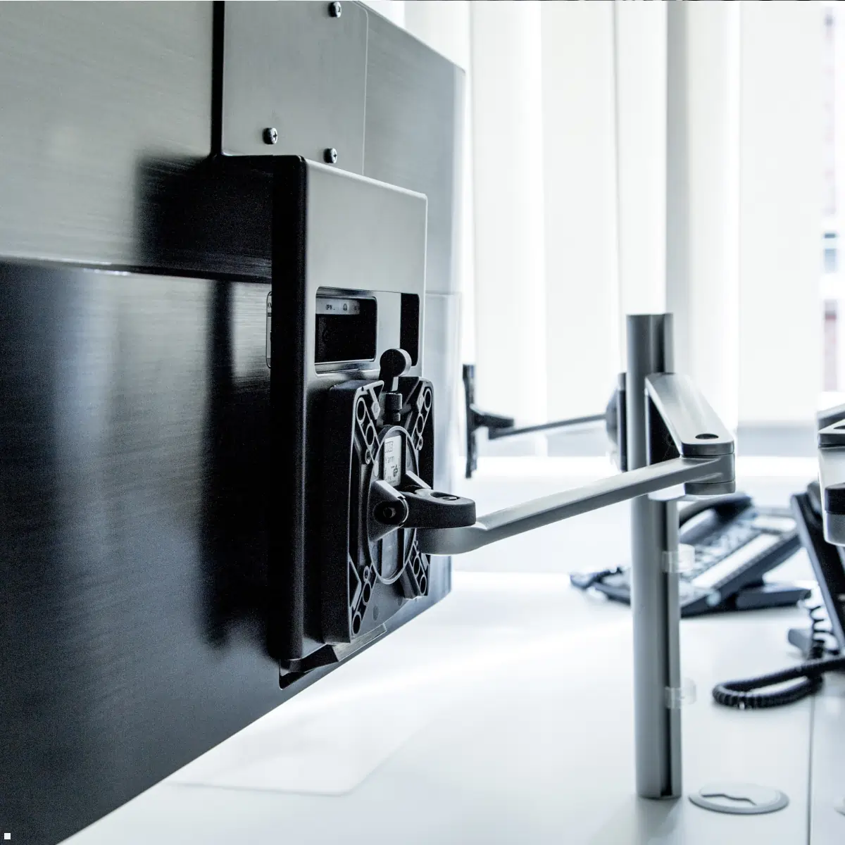 Nahezu alle Hersteller von Monitoren / Fernseh-Geräten (wie LG, Sony, Panasonic, Samsung, Metz, Loewe) stellen auf der Rückseite der Bildschirme entsprechende Gewindelöcher für die Befestigung an Halterungssystemen zur Verfügung. Aus dem horizontalen sowie dem vertikalen Abstand der Gewindelöcher resultiert die VESA Norm.