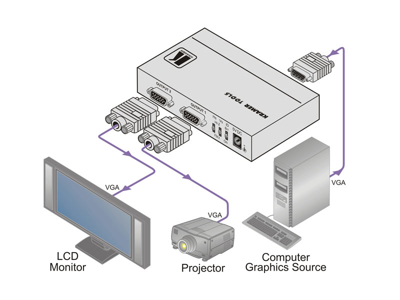 Der VP-200K ist ein Hochleistungs-Verteilverstärker für Computergrafik-Videosignale mit Auflösungen von VGA bis UXGA und höher. Er hat einen Eingang, bieten Pufferung und Entkopplung und verteilt das Signal an zwei oder identische Ausgänge