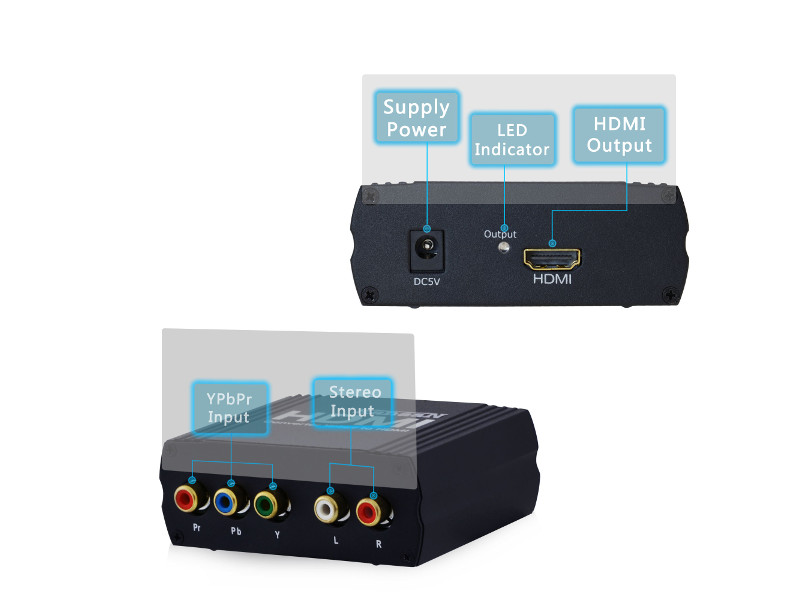 Mit diesem Leicke YPbPr-HDMI Konverter können Sie Ihre Geräte mit einem YPbPr-Anschluss in ein HDMI-Signal konvertieren und an einem Flachbildschirm über ein HDMI-Kabel anschließen. Das Audiosignal wird wie das Bildsignal in ein HDMI-Signal konvertiert.