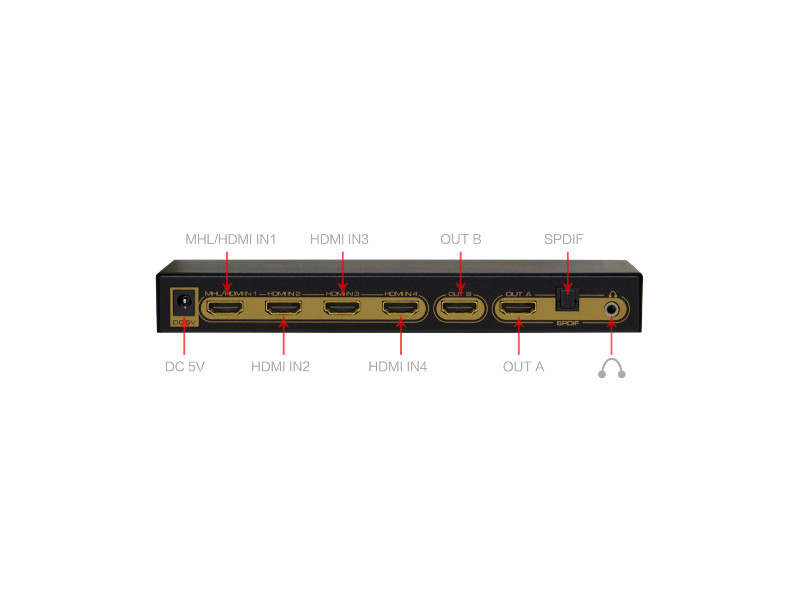 - Lieferumfang: KanaaN 4x2-4K-UHD-Switch, Netzteil, Bedienungsanleitung, MHL-Kabel für Galaxy S2
