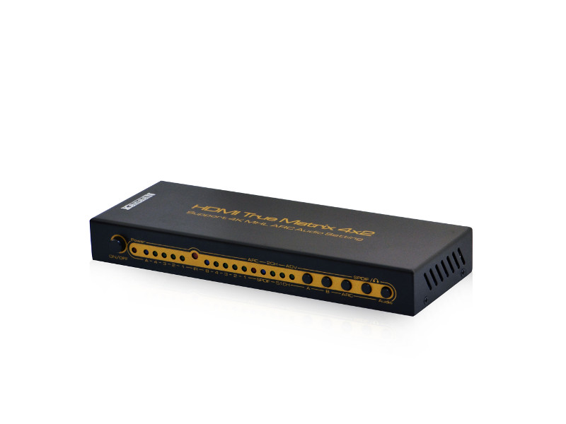 Der LEICKE KanaaN UHD Matrix 4x2 Switch ist in der Lage UHD-Signale in voller Auflösung mit 3840x2160 Pixeln zu übertragen – inklusive 3D- und ARC-Funktionalität. Dabei ist der Switch vollkommen abwärtskompatibel, um den Betrieb bestehender Technik an neuen Geräten zu gewährleisten.