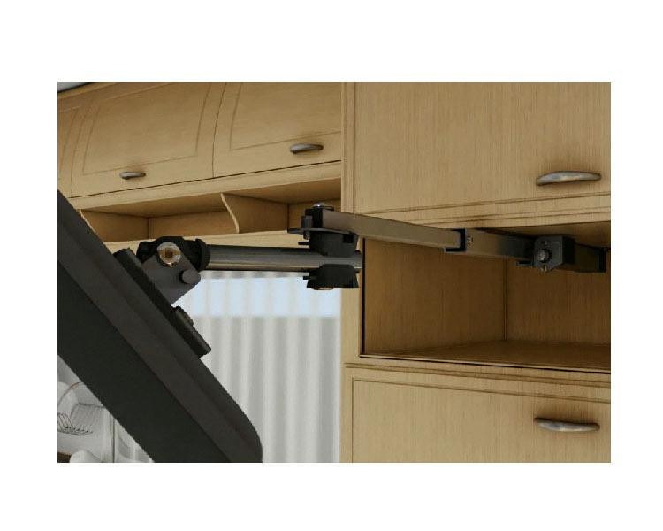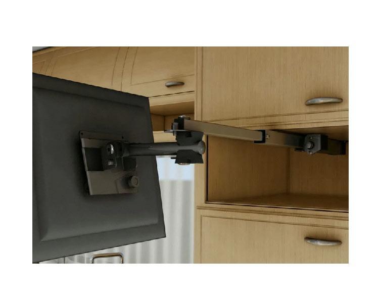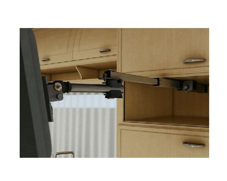 Die Monitorhalterung MonLines Medio-W als Schrankeinbau ist für Wohnwagen, Wohnmobil, WOMO, Boot oder Campingwagen vorsehen, um in Schränken den Monitor verschwinden zu lassen. Besondere Ort bedürfen besondere Halterungssysteme- der MonLines Medio - W ist ein Monitor Schwenkarm.