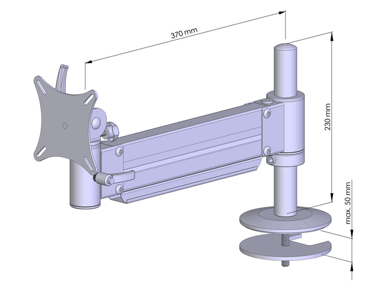 - Stufenlose Höhenverstellung der Monitorhalterung
