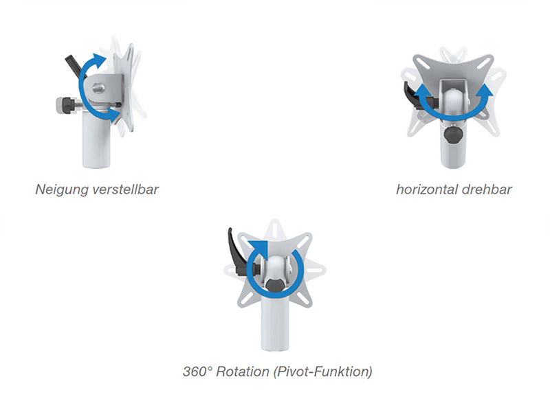 - Drei Drehpunkte ermöglichen die flexible Einstellung des Monitors.
