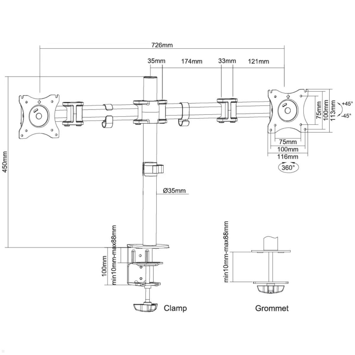 Technische Details Dual Display Schreibtisch Halterung 10Zoll - 27 Zoll