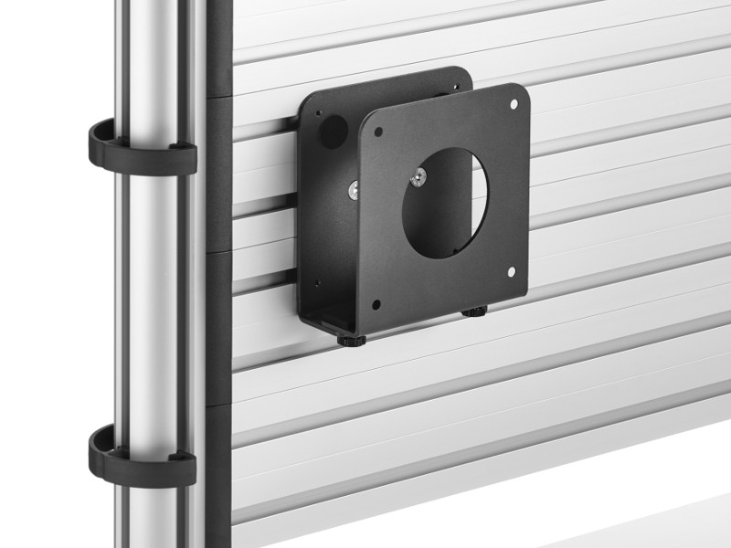 Der hochwertige Novus 795+9085+000 TSS Thin Client Halterung ist zur Montage zwischen VESA-Aufnahme und Monitor, an einer Slatwall oder an einer TSS Säule geeignet.