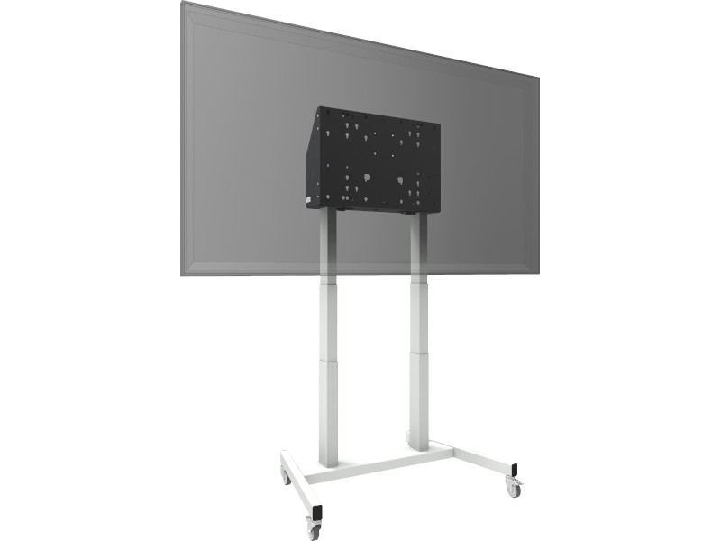 Dieser schwarze Bodenlift auf Rollen bis 86 Zoll bietet dank seiner Doppelsäulen höchstmögliche Stabilität und Robustheit für die Arbeit mit einem Touch-Display. Mit einer Fernbedienung ist der Touchscreen elektrisch höhenverstellbar - dabei ist der Motor kaum hörbar. Kabel können in der 30 mm weiten Kabelführung untergebracht werden. Ebenso ist ein Kollisionsschutz verbaut - wenn der Hubbereich blockiert ist, hält der Motor sofort an. So kann man sich auf das wesentliche konzentrieren: Die Nutzung des Touchscreens als Präsentationsfläche in Konferenzräumen oder an Universitäten. Auf der Rückseite der Bildschirmaufnahme ist Raum für die Platzierung eines Mini-PCs oder Thin Clients reserviert. Der Bodenlift bietet eine integrierte Halterung mit VESA Lochmuster von maximal 800 x 600 mm.