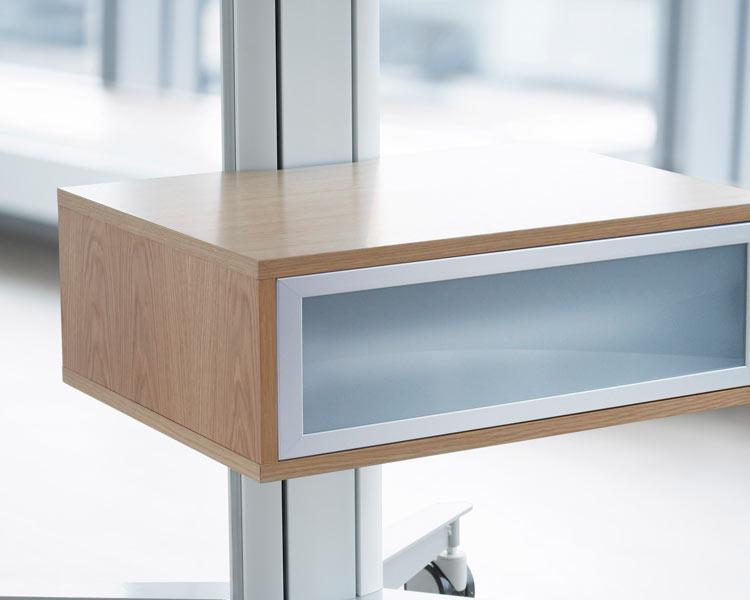 Die SMS X Media Box (PD400003) in der Farbe eiche ist eine sichere und elegante Aufbewahrung Ihrer Computer- oder AV-Ausrüstung für die SMS Smart Media Solutions Monitorständer, SMS Deckhalterung und SMS Wandhalterungen aus der SMS Serie X.