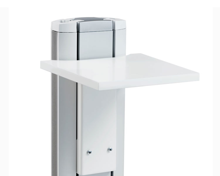 Bord für attraktive und praktische Ablage der Kamera ganz oben. Kann auch an der Säule unterhalb der Bildschirme platziert werden. Lässt sich einfach mit Codec Shelf kombinieren, falls Sie auch Codec
