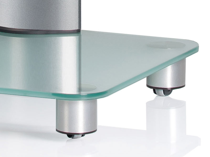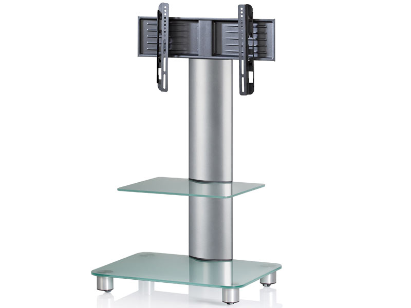 Der VCM TV Standfuß Bilano silber mit Zwischenboden Mattglas inkl. Rollen ist eine Kombination aus hochwertigem Aluminium und edlen Mattglas. Der Zwischenboden bieten reichlich Platz für die Zusatzgeräte wie DVD Rekorder oder Spielekonsole. Die vier verdeckten Laufrollen in den Alu-Füßen sorgen für eine leichte Mobilität. Der clevere VCM TV Kabelkanal an der Rückseite macht die Kabel nahezu unsichtbar und sorgt für eine schöne Ordnung.