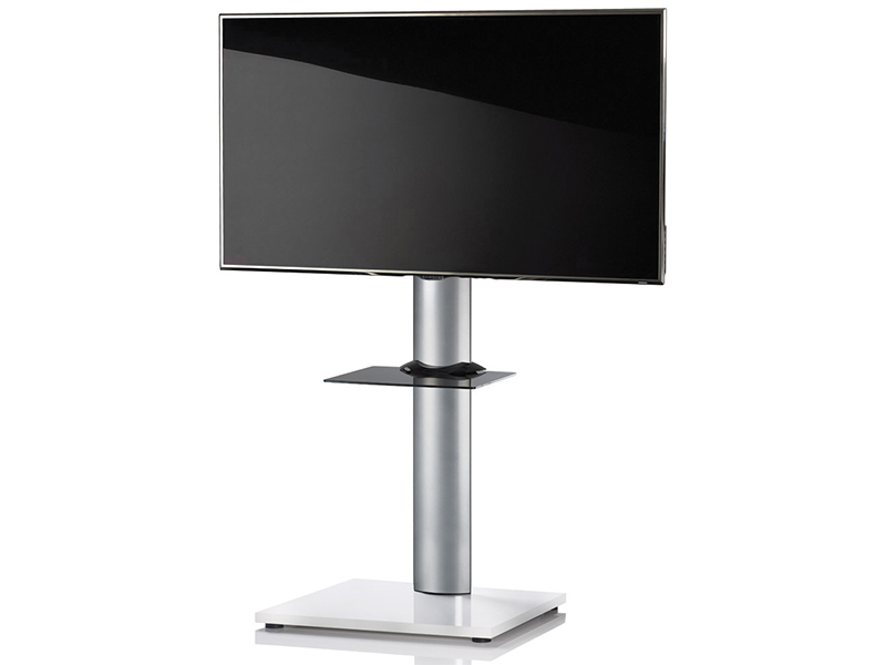 Der VCM TV Ständer Onu Weißlack mit Regal ohne Rollen ist eine Kombination aus hochwertiger gebürtester Aluminiumsäule und und schwarzen Bodenträger. Der clevere VCM Kabelkanal an der Rückseite macht die Kabel nahezu unsichtbar und sorgt für eine schöne Ordnung. Der Fernsehständer ist speziell entwickelt für den professionellen Einsatz in Hotels, Schulen, Arztpraxen, Konferenzräumen, Messen, Flughäfen, öffentlichen Einrichtungen, Autohäusern, Ausstellungsräumen etc..