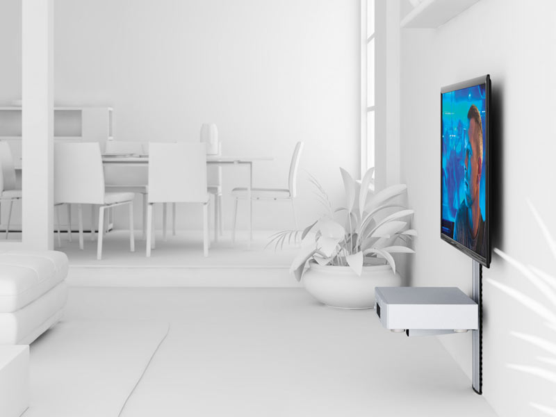 Passende Accessoires verleihen Ihrem Multimedia-Center den letzten Schliff. Der Vogels Audio/DVD-Halter AV 10 kann in einer beliebigen Höhe an der Säule positioniert und zur Anpassung an A/V-Geräte fast jeder Größe eingestellt werden. Formschön können Sie an einem Kabelkanal zusätzliche Geräte wie DVD-Player, Blue-ray-Recorder, Receiver o.ä. befestigen.