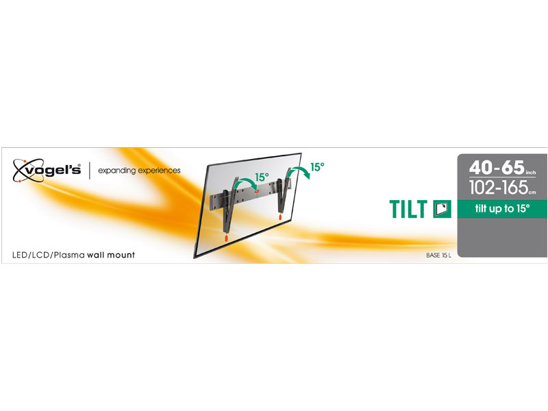 Befestigen Sie Ihren Fernseher an der Wand mit der Vogels Base 15 L neigbare TV Wandhalterung bis 65Zoll. Die Fernsehhalterung kann bis zu 45 kg tragen.